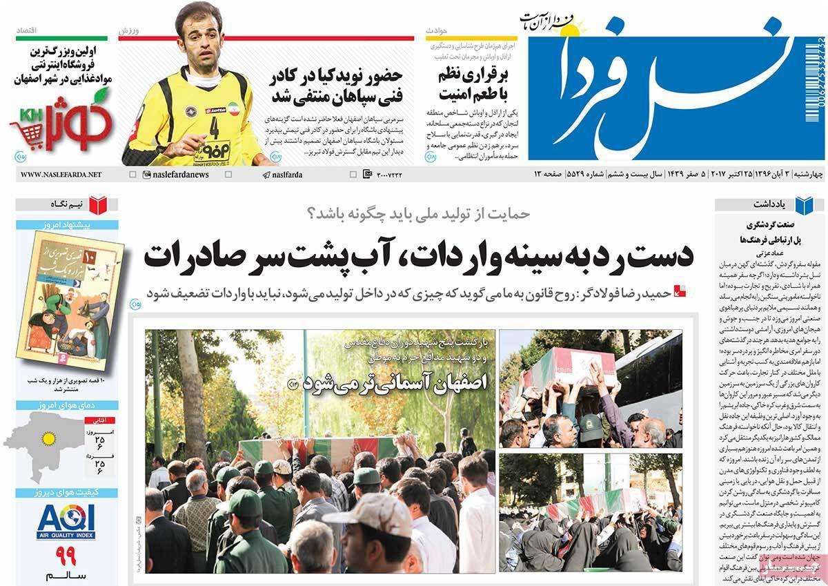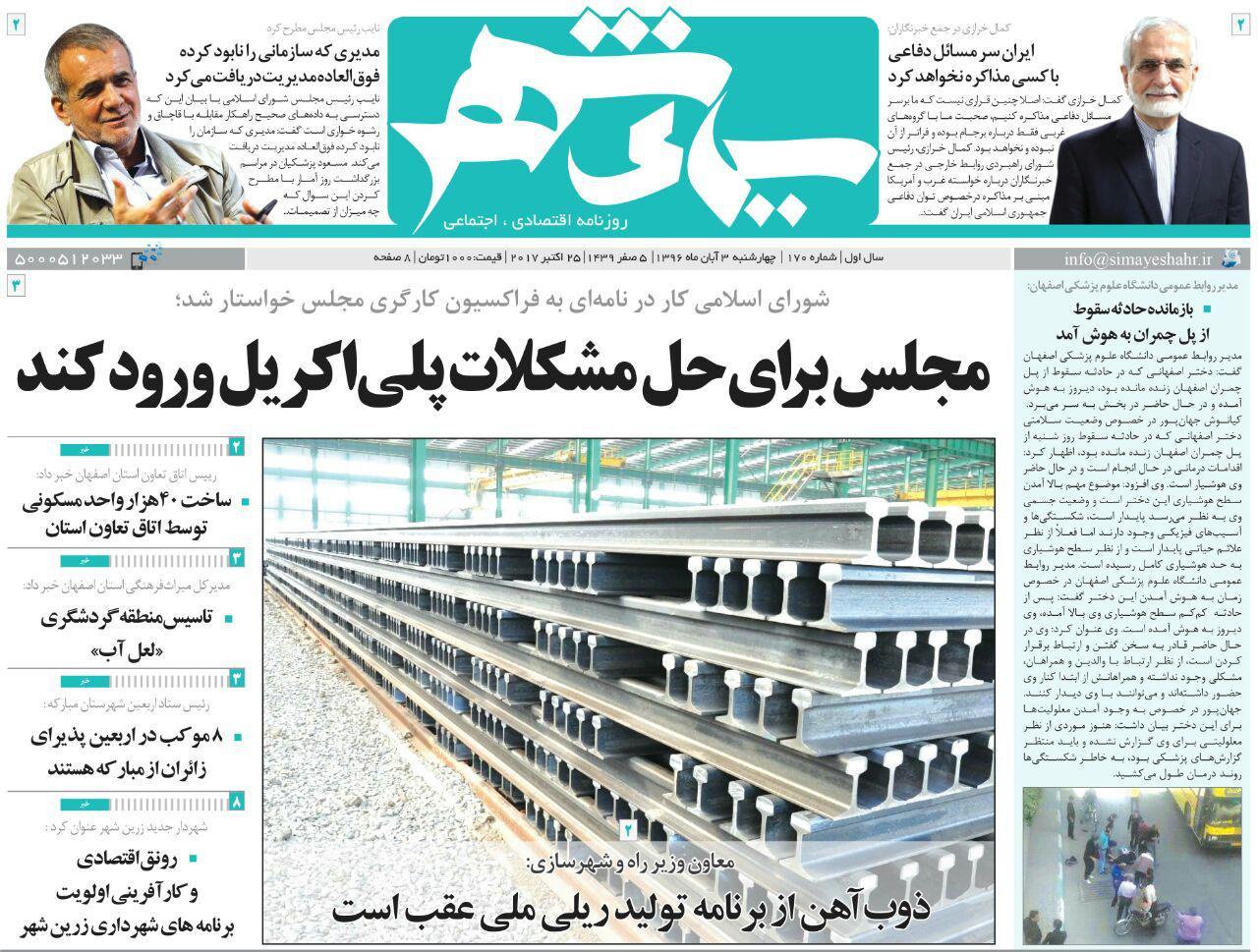 عناوین نخست روزنامه های امروز اصفهان
