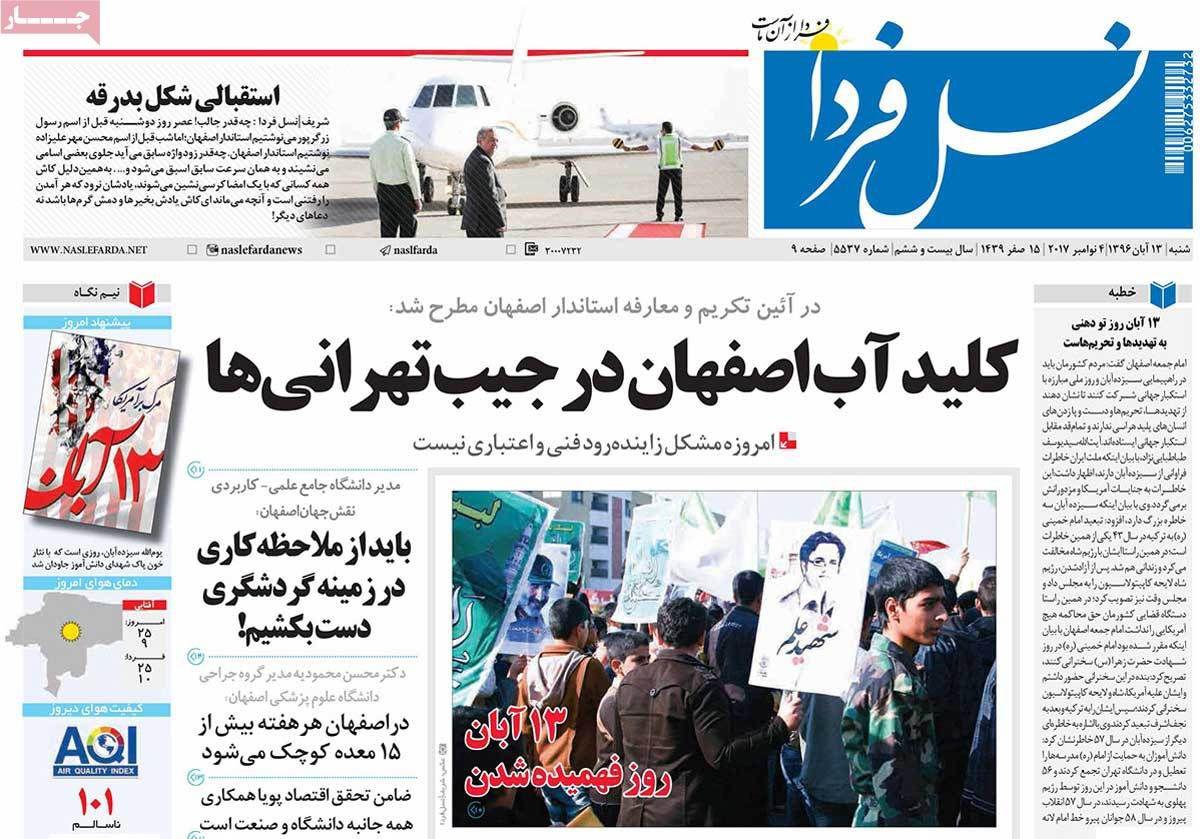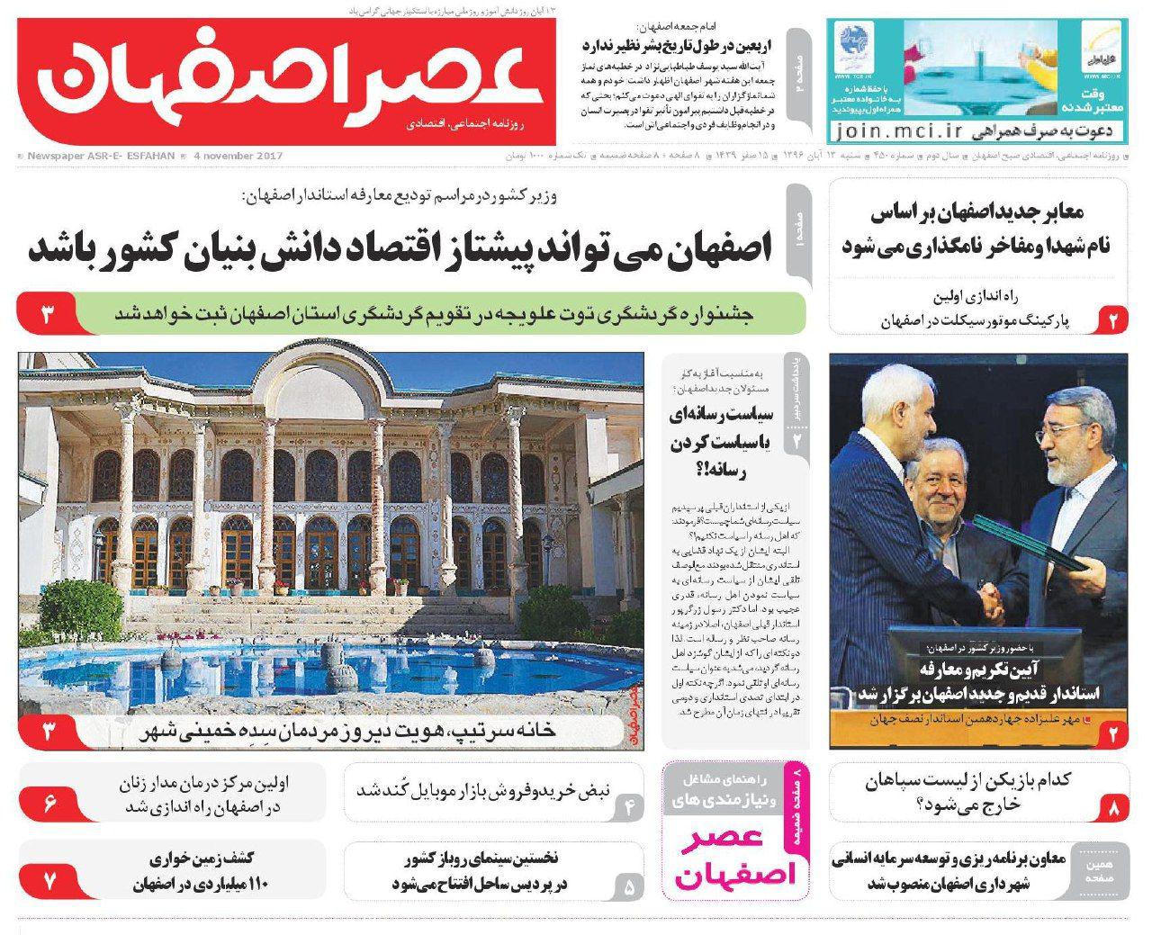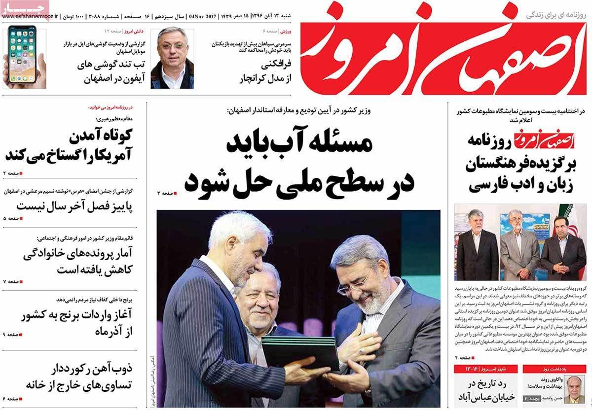 عناوین مهم روزنامه های اصفهان ، 13 آبان