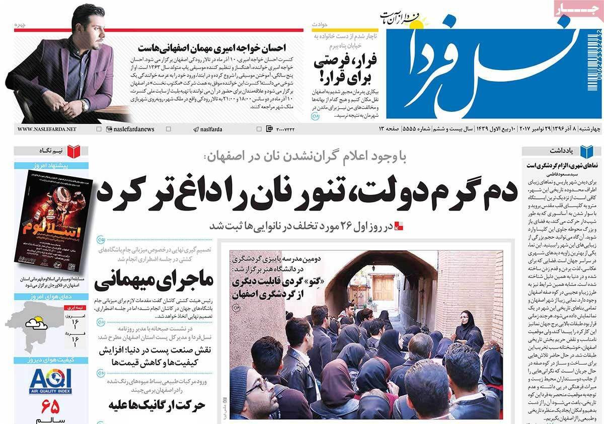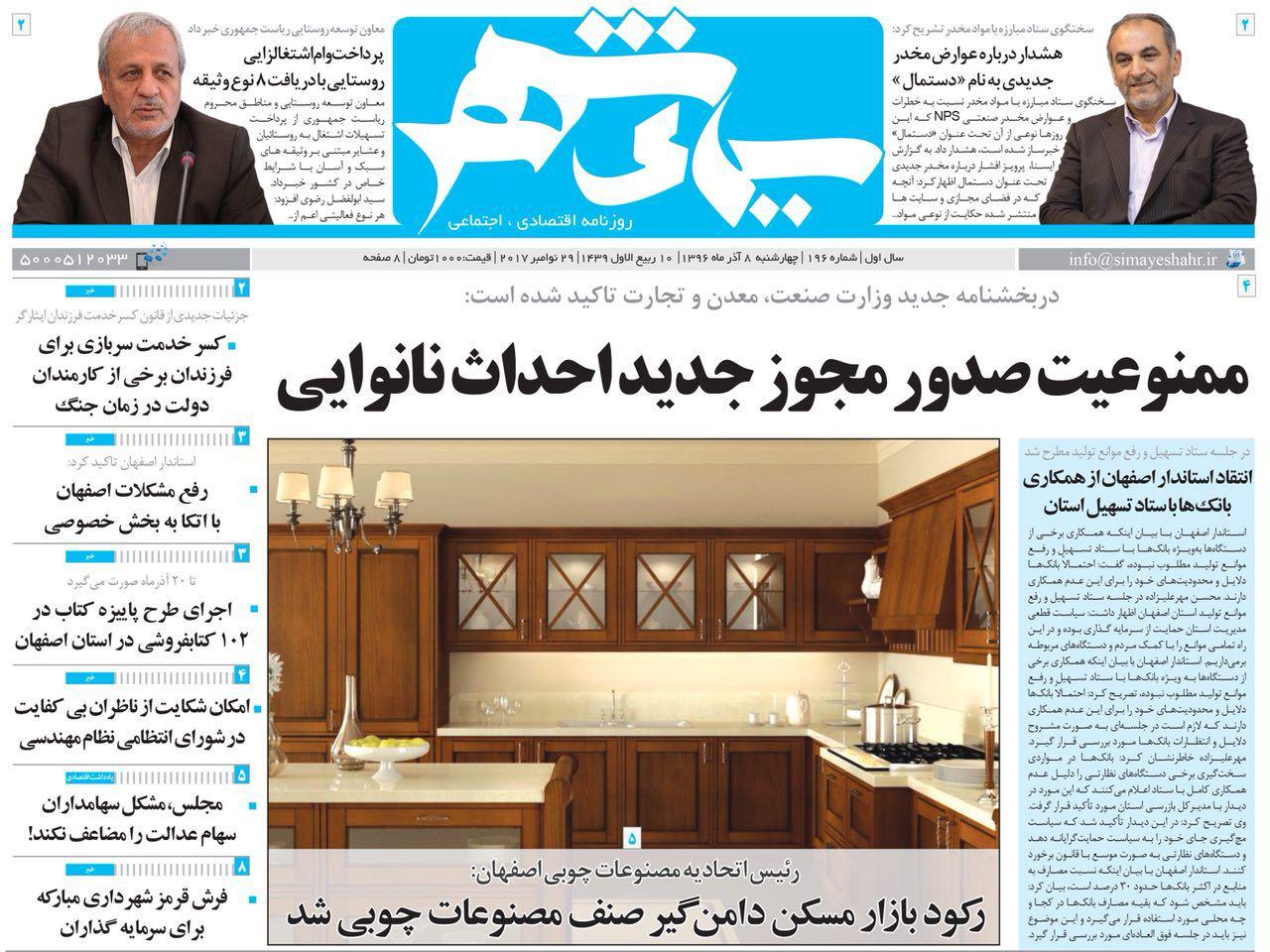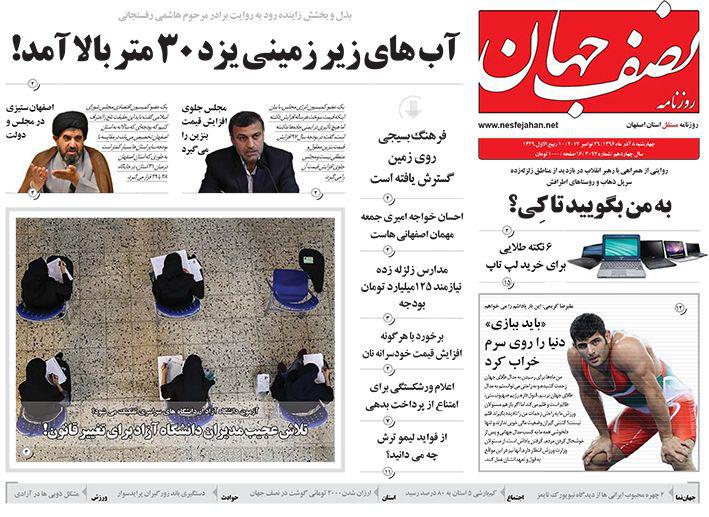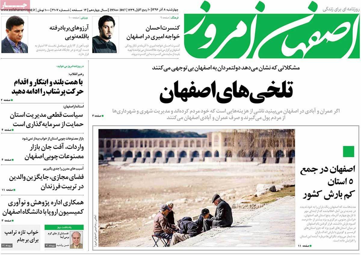 عناوین مهم روزنامه های اصفهان،هشتم آذر