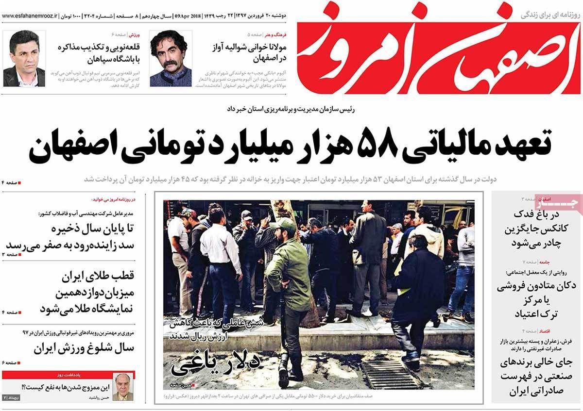 زلزله ارزی ،دلار یاغی و برخی اتفاقات در شهرداری فاجعه است از دیگر تیترهای روزنامه های اصفهان در 20 فروردین است.