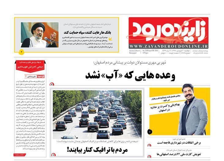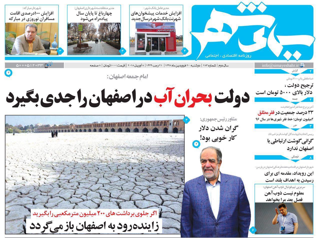 امروز روزنامه های اصفهان در تیتر های درشت خود از بحران آب در اصفهان نوشتند.