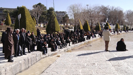 اصفهانی ها زیر پل خواجو به رسم قدیم آواز می خوانند یکی از شاعران اصفهانی این شعر را می خواند : «زنده رود ما گلویش ز باران تر شود