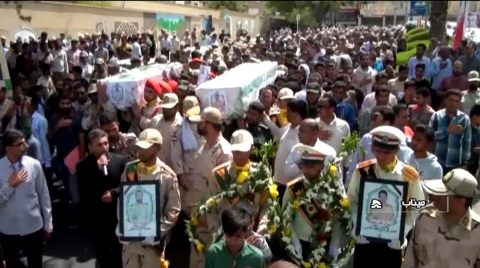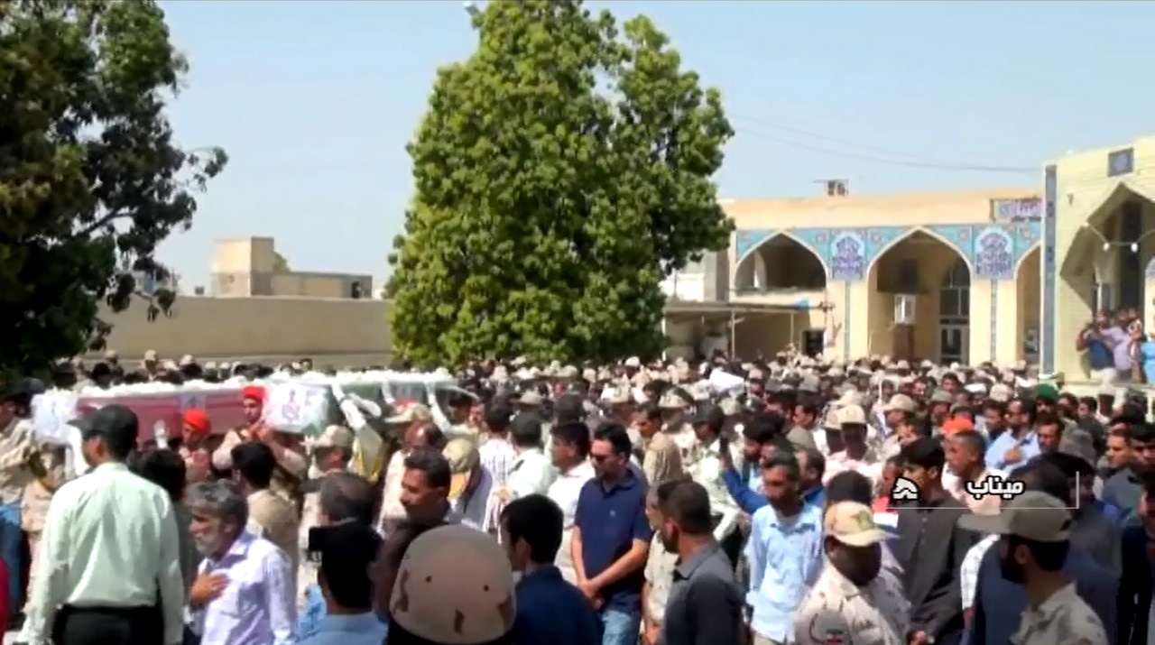 مراسم تشییع پیکر ۲ شهید دریابانی در میناب