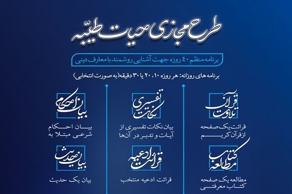 برنامه ۴۰ روزه روشمند معنوی مبتنی بر قرآن کریم با عنوان طرح «حیات طیبه» در بستر فضای مجازی برگزار می‌شود.
