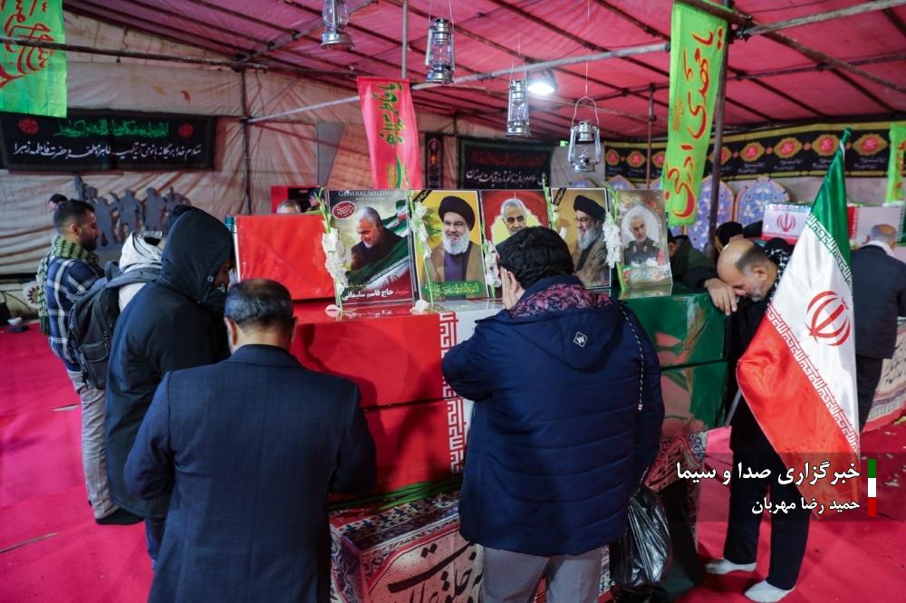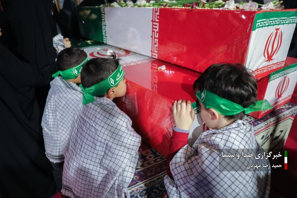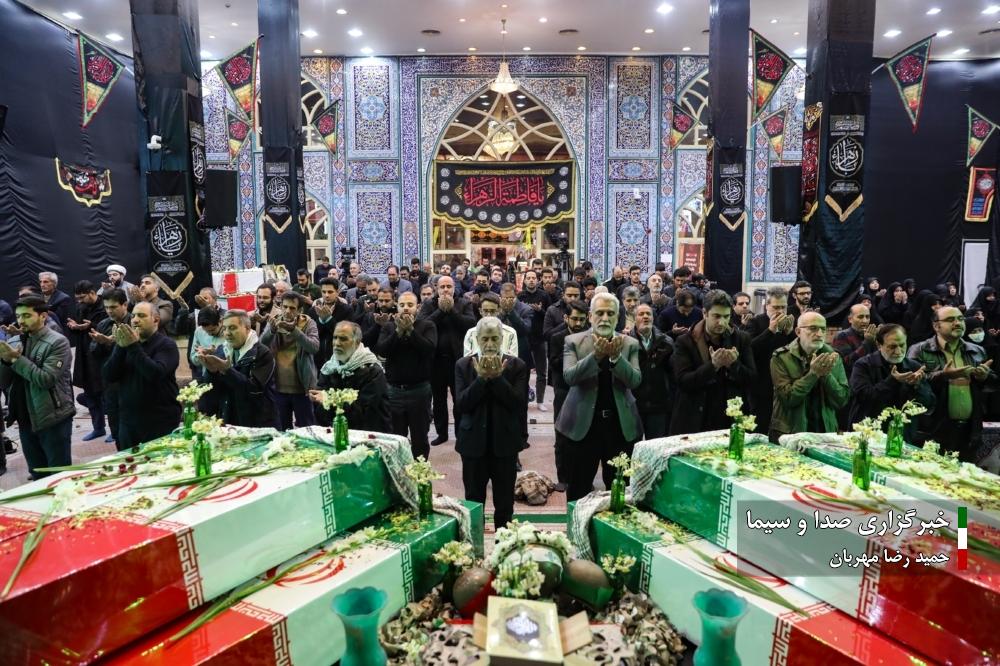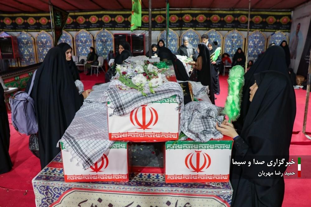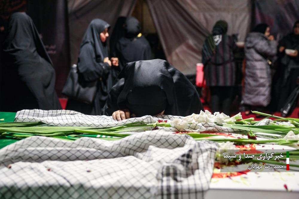 آیین وداع با پیکر مطهر ۱۰۰ شهید گمنام در شب شهادت حضرت زهرا (س) در مسجد جامع خرمشهر موزه ملی انقلاب اسلامی تهران برگزار شد.