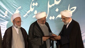 آیت الله محسن قمی معاون بین الملل دفتر مقام معظم رهبری با اهدای لوح سپاس رهبر انقلاب به حجت الاسلام مهدوی پور از خدمات پانزده ساله وی قدردانی کرد.